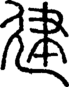 (建) 立朝律也。今謂凡豎立爲建。許云。立朝律也。此必古義。今未攷出。从聿。律省也。从廴。廷省也。居萬切。十四部。
