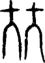 (比) 密也。今韵平上去入四聲皆錄此字。要宻義足以?之。其本義謂相親密也。餘義俌也、及也、次也、校也、例也、類也、頻也、擇善而從之也、阿黨也。皆其所引伸。許書無篦字。古衹作比。見蒼頡篇、釋名、漢書匈奴傳。周禮或叚比爲庀。二人爲从。反从爲比。猶反人爲匕也。毗二切。按四聲俱收。其義本一。其音強分耳。唐人詩多讀入聲者。十五部。凡此之屬皆从比。